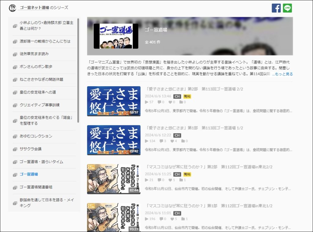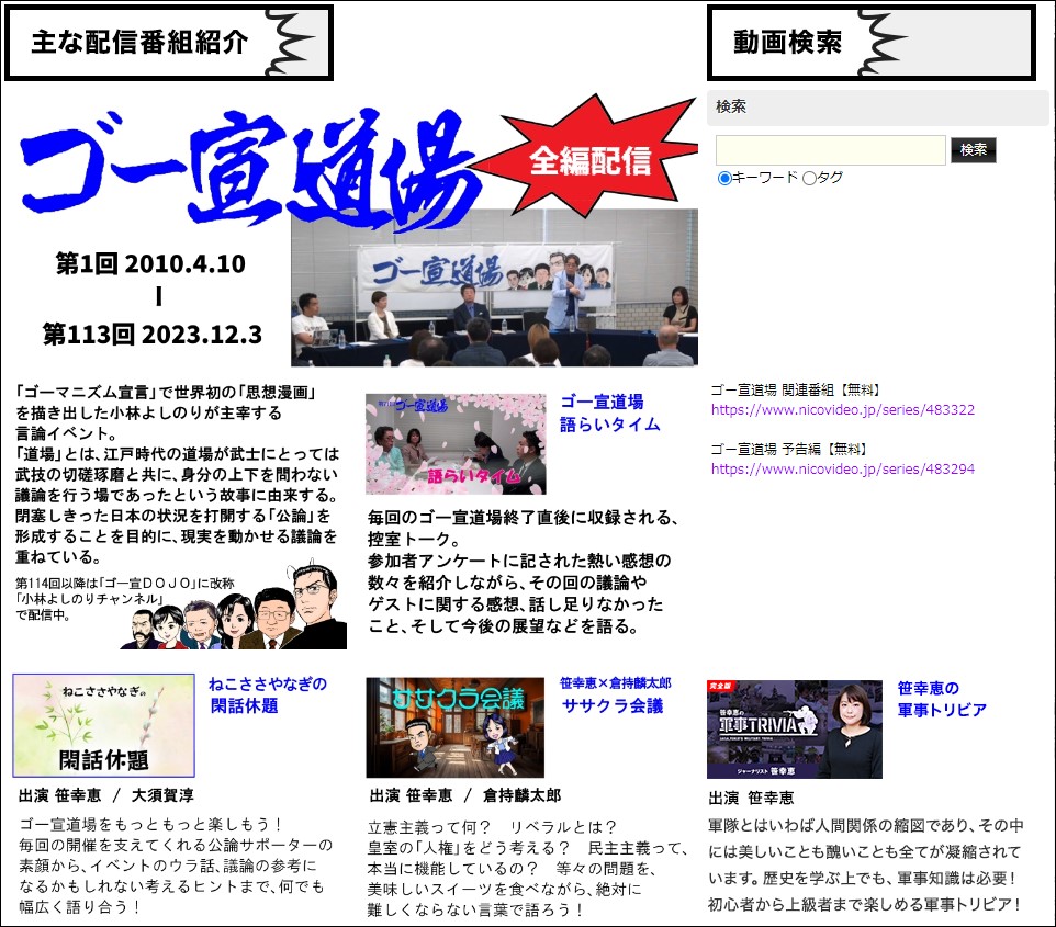ニコニコ「ゴー宣ネット道場チャンネル」、PC版チャンネルページをリニューアルしました。