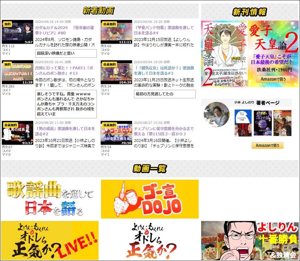 ニコニコ「小林よしのりチャンネル」のWebページをリニューアルしました。