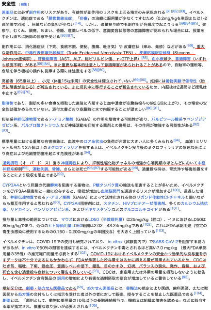 こうして接種者にとって不快な機序を並べ立てる理由は、解毒と呼ばれる医療行為に注意喚起したいからです。上記の機序を踏まえると、元の身体に戻る方法はありえません。そして医学不信を書いてきた私も、抜き差しならない副作用には、病院に行くしかないと言うより他はないのです。反ワク界隈ではイベルメクチンが激推しされていますが、これは催奇形性のある薬剤で若年層にはリスクです※⑧。医学界のマッチポンプは腹立たしいですが、結局は対症療法を求めざるを得ないのです。