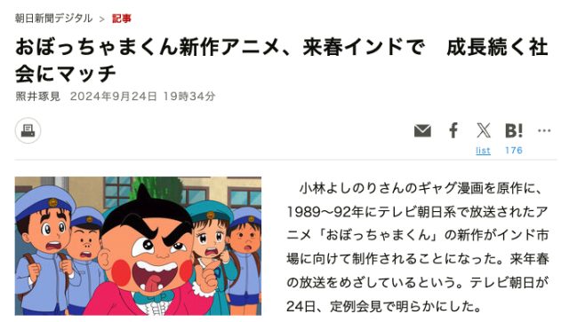 「朝日新聞デジタル」で、インド版・おぼっちゃまくんに関する発表がニュースになっていました!