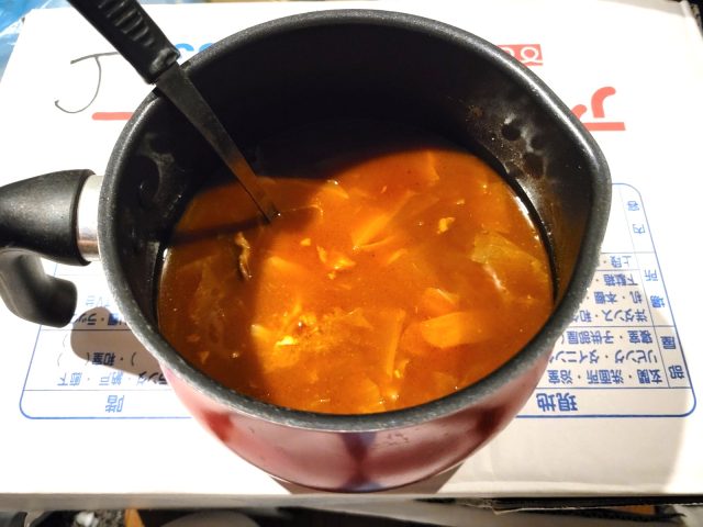 工夫としては、和風だしを入れて、水を足して、かさ増しとサッパリ感を両立したことです(・ω・)k