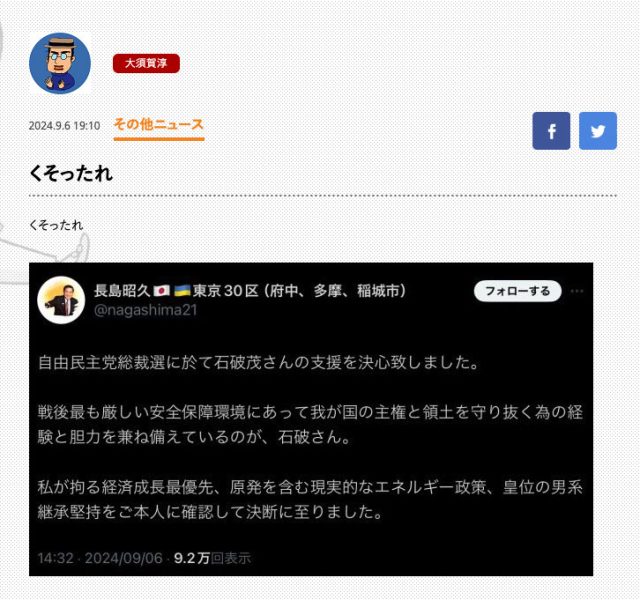 それにしても、長島昭久が自民と(当時の)民主の両党にわたり「安全保障」で同じポストを務めるという事には、失笑しか出てきません。