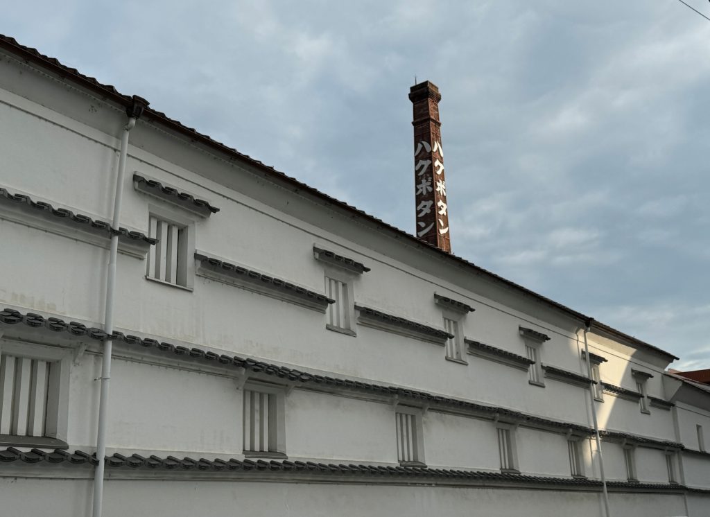酒蔵通りから見える、酒蔵白牡丹の煙突