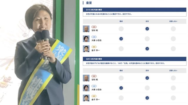 なお、上で引用したNHKの候補者アンケートは、女性天皇、女系天皇それぞれの賛否について設問があるので、各候補のスタンスを知るのに大変役立ちます。皆さん、参考になさってください!