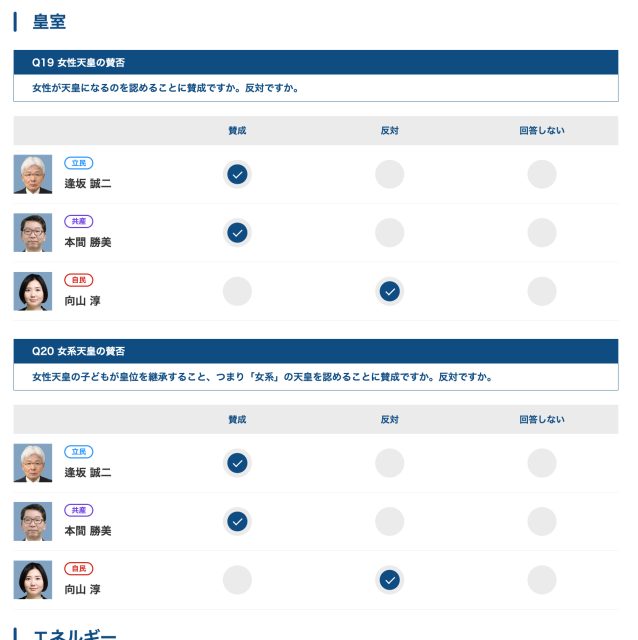 なお、日テレのアンケートでは女性天皇に「やや賛成」と回答していますが、「男系男子」が自身の考えというなら、これも違っているという事になります。