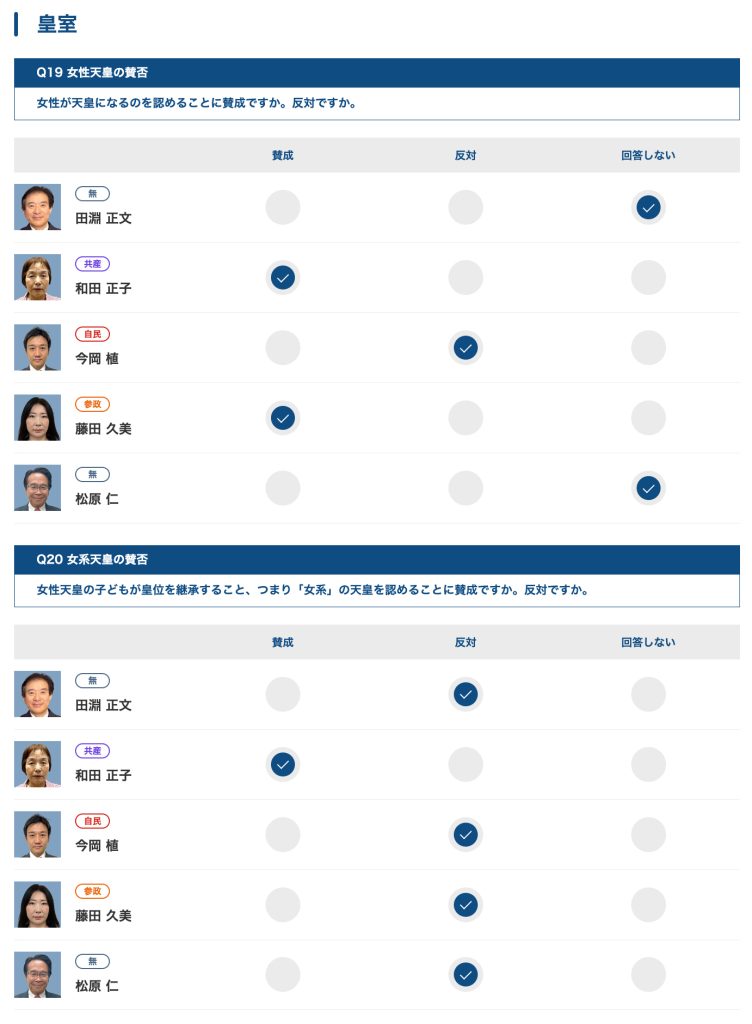 貴殿は、先の衆院選におけるNHKのアンケートで、女系天皇には「反対」としながらも、男尊女卑の本音が露呈してしまう事を避けてか、女性天皇については「回答しない」という、大変卑怯な方策をとっています。