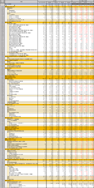 超過死亡の原因を求めるため、コロナ前5年間の死因の平均割合を求め、中位推計の総死亡予測に掛け合わせて比較するという方法をとってみます<表①>。つまり「中位推計で予想される死亡数がこれまでと同じ死因割合だったら?」という仮説と、実死亡の死因を比較する訳です。ワクチン以降三年間の超過死亡は20万人ですが、その超過分(過少分)の死因内訳は<表②>となります。