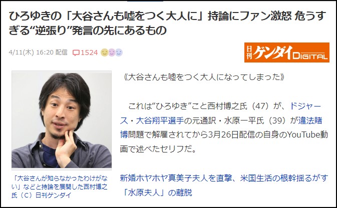 しかし、世の中にはずーっと水原を信じ続け、大谷の方を疑っていた人がいるのです。