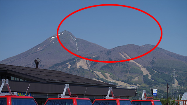 この1888年(明治21年)の会津・磐梯山の噴火は凄まじいもので、下記写真の赤丸で囲った部分に元々あった山体が吹き飛ぶレベルのものでした(なので、戊辰戦争の時に白虎隊たちが見ていた磐梯山は、現在の姿とは異なります)。