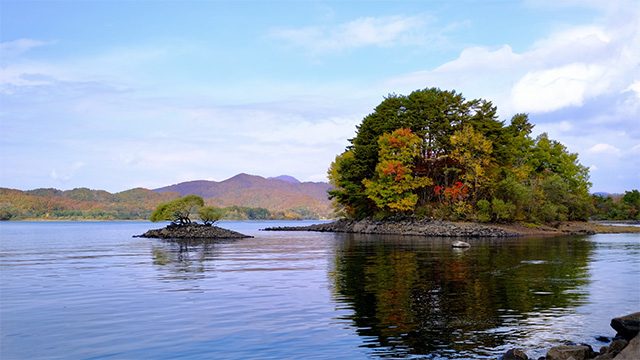 山から流れた土砂は周囲の河川をせきとめ、いくつもの湖沼ができました。その中でも最大のものが「桧原湖」です。
