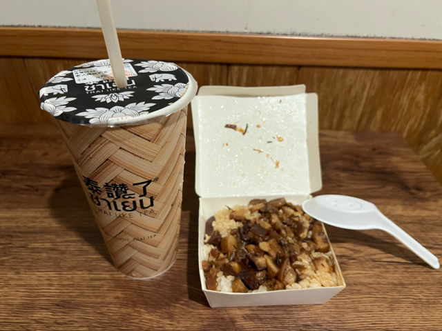 夜市で買った魯肉飯(ルーローハン)。200円くらいでした。