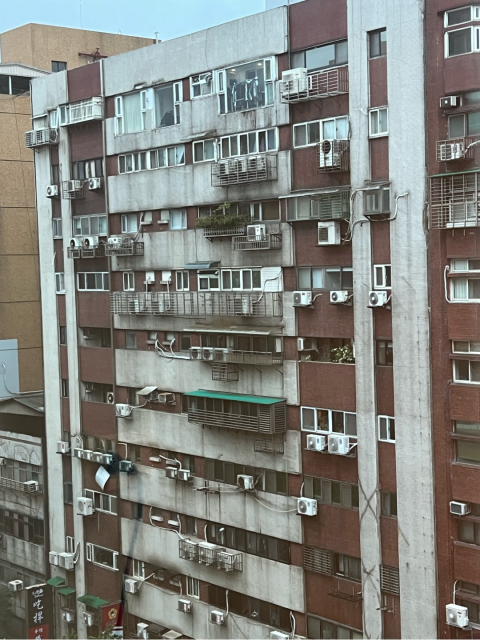 乱雑に配置された室外機がカッコいいのですが、この汚れ具合と窓の暗さがやはりどこか怖いですね。