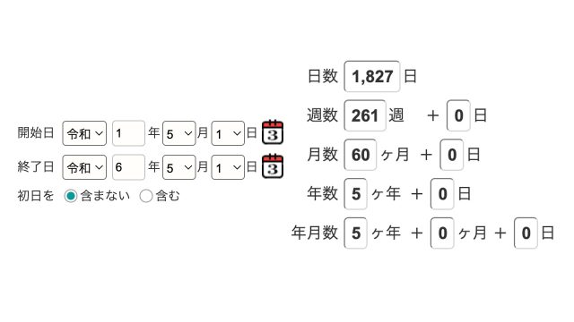 特定期間の日数をカウントできるツールで確認してみたら、我々はすでに令和を1827日過ごしているんですね。