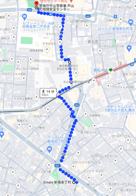 14時過ぎにはカード停止手続きを終えてすぐ穴八幡宮下の交番へ。