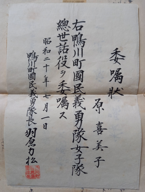 こういった国民義勇隊の委嘱状を資料館などではなく、実際に人が暮らしていた家でみると戦争のリアルをより感じます。また、これらを捨てずに大切に保管していた理由も考えさせられます。