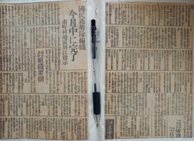 「警防Ⅲ 原」と書かれたノートには大東亜戦争末期の昭和20年3月に閣議決定され、創設された国民義勇隊やその後、6月に創設された国民義勇戦闘隊に関する新聞の切り抜き記事やメモ書きなどがありました。