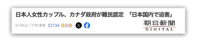 日本人の女性カップルが、日本で差別を受けたり、同性婚の法整備が進んでいない事を理由として、カナダで「難民認定」されたというニュースを読んで仰天しました。