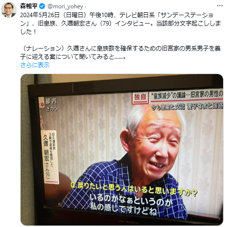 地上波全国放送で、旧皇族の方のインタビューが放送されました。