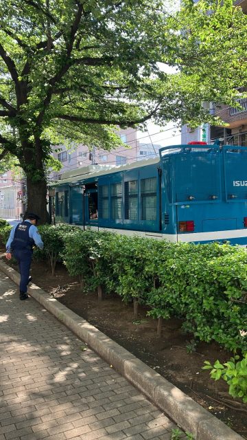 この報道があってから連日警察車両が通勤路に停まっていました。