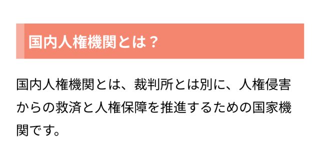 モヤモヤしながら調べていると、日本弁護士連合会のサイトに「国内人権機関の設立に向けた取組(国内人権機関実現委員会)」というページがありました。