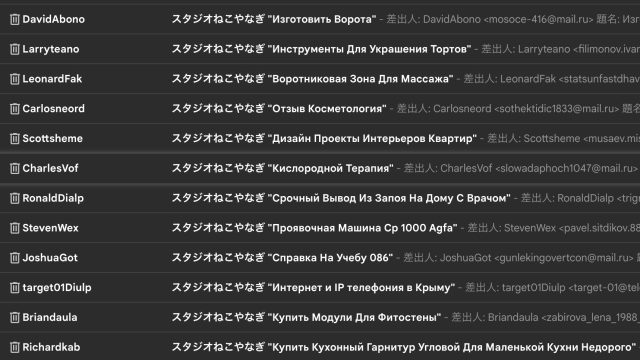 ニコニコへの攻撃と関係あるかはまったく不明ですが、この週末は、うちの仕事用サイトの依頼フォームにも、いつもより大量のスパムが来ていました(なぜか全部ロシア語…)。