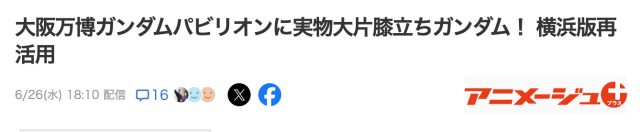 大阪万博に「ガンダム」のパビリオンが出来るそうで(本題と関係ないけど「主人公の声」どうなるんかな?既存の音声までキャンセルされそうな悪い予感…。)