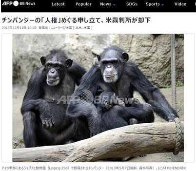 アメリカでは10年ほど前から、裁判所に対して「チンパンジーに基本的人権を与えるべきだ」と申し立てる活動が行われており、そのたびに「チンパンジーに人権なし」と却下され、また上訴するというトンチンカンな申し立てが繰り返されている。