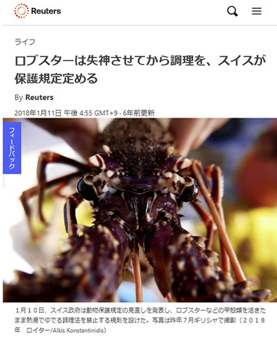 ■スイス政府、「ロブスターの尊厳」まで…