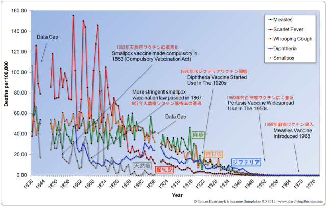 『ワクチン神話捏造の歴史』(ヒカルランド)という本がありますが、主張は<表>を見れば一目瞭然です。