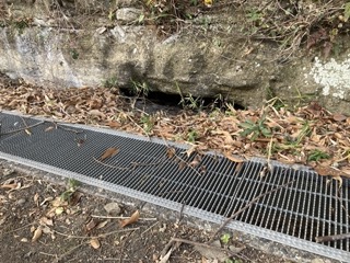道路脇の側溝の奥に空いた穴。