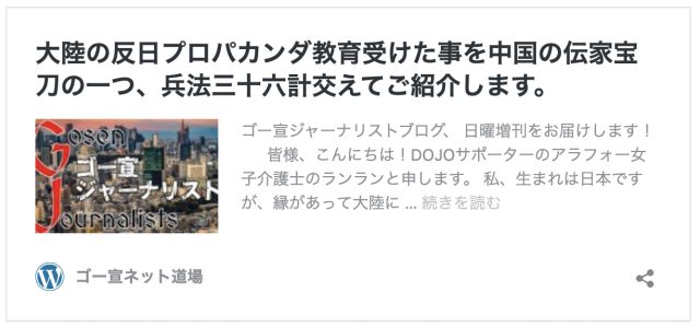 あの記事は色々と反響をいただき、なかでもDOJOサポーターのランランさん(最近では下記のようなゴー宣ジャーナリスト記事でも活躍されています!)