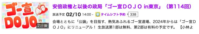 いよいよ今週土曜、2/10の14:00から「第114回ゴー宣DOJO:安倍政権と以後の政局」が開催されます!