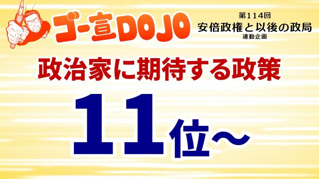 併せて募集した「政治家に期待する政策」アンケートに寄せられた回答のうち、11位以下のものを動画でご紹介します。