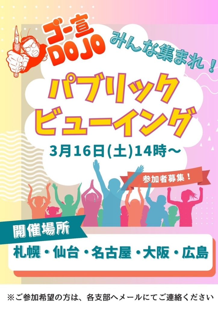 それぞれの地域にお住まいの方、DOJOサポーターとワイワイ話をしながら、生放送を視聴してみませんか?