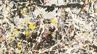 はっきりとした人物画でなく、キャンバスに絵の具を撒き散らして描く抽象画で有名なジャクソン・ポロック。躍動感と力強さなど明るい感想が多かったのですが、「撃たれて血まみれになってる」「逃げてる」「戦争」という恐怖に関する感想を聞くようになりました。