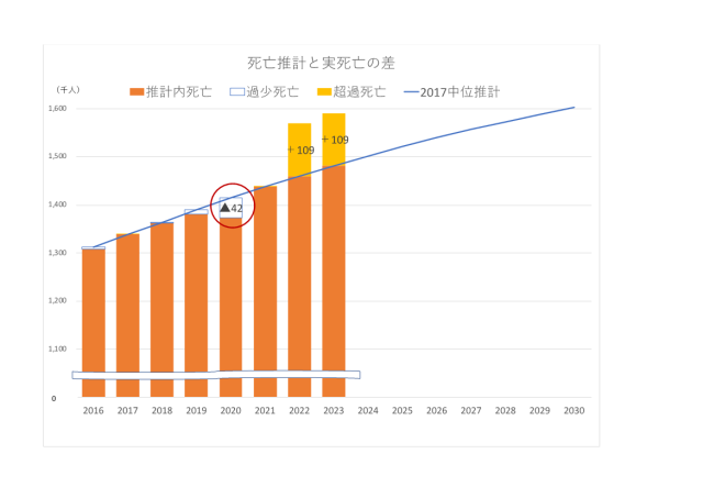 ※①)死亡推計と実死亡の差(日本の将来推計人口より)