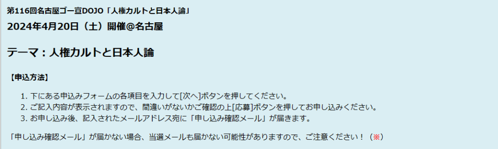 来月20日開催のゴー宣DOJOin名古屋に応募しましょう!!