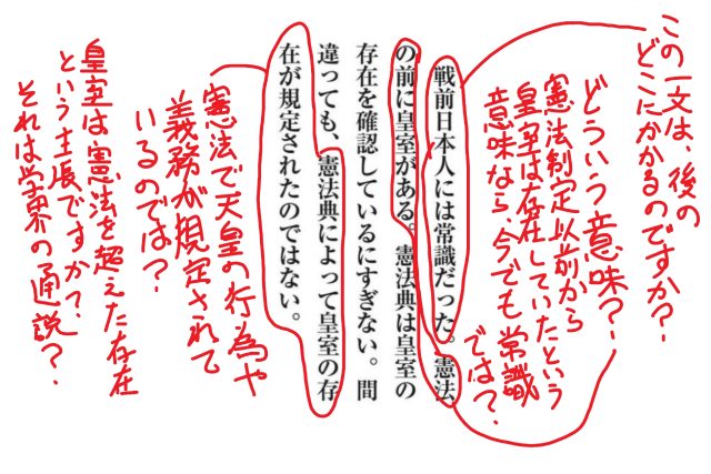 憲法で縛られている以上に「憲政史上でも天皇には権力がある」と言いたいように見えてしまいます。