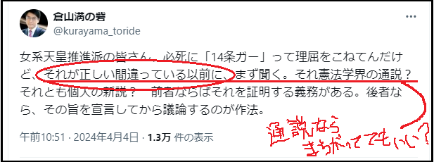 君を「支持する支持しない以前に」、まともな憲法学者……いや、法曹関係者……法学部1年生も怖くて(2つの意味があります)相手にしない……が正確。