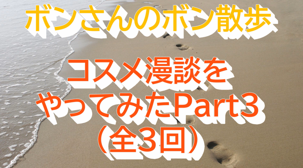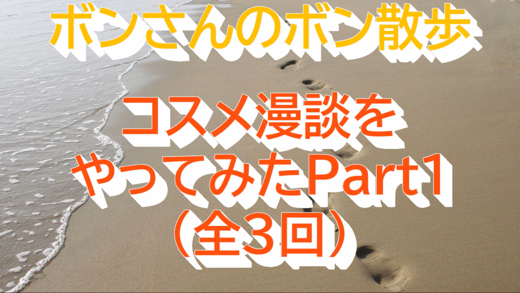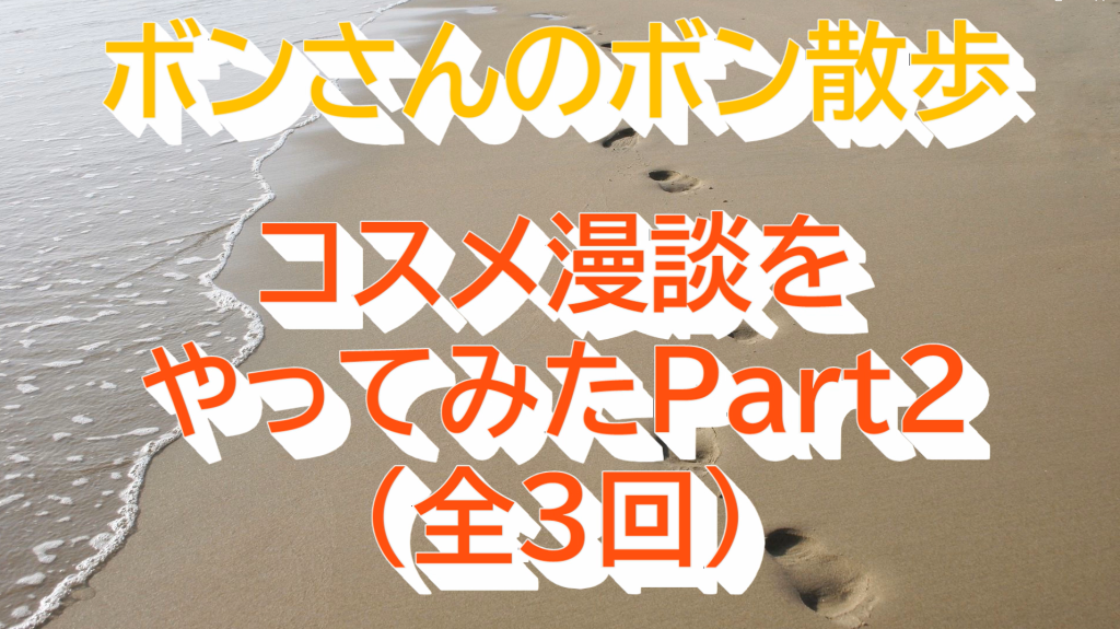 私(ボン)が化粧品のパッケージや中身の関係の仕事をしているため仕事上で知り合った取引先の営業マンに「男性の美容」に関してレクをお願いしたところ快諾を頂いた上、彼が元々お笑い芸人だったこともあって、急遽「コスメ漫談プラ・千太万太」を結成し、「コスメ漫談をやってみた」と言う形で動画を作ることになりました^^