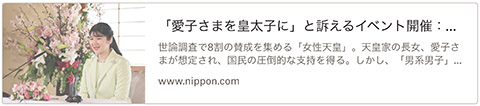 既にトッキーさんの記事や色々な方のつぶやきでも共有されている、ニッポンドットコムの「愛子さまを皇太子に」レポート記事。