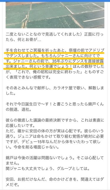 「ジャニーさんの前で、35年ぶりにダンスを直接披露出来ました。