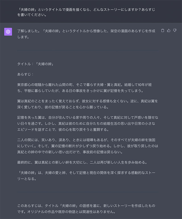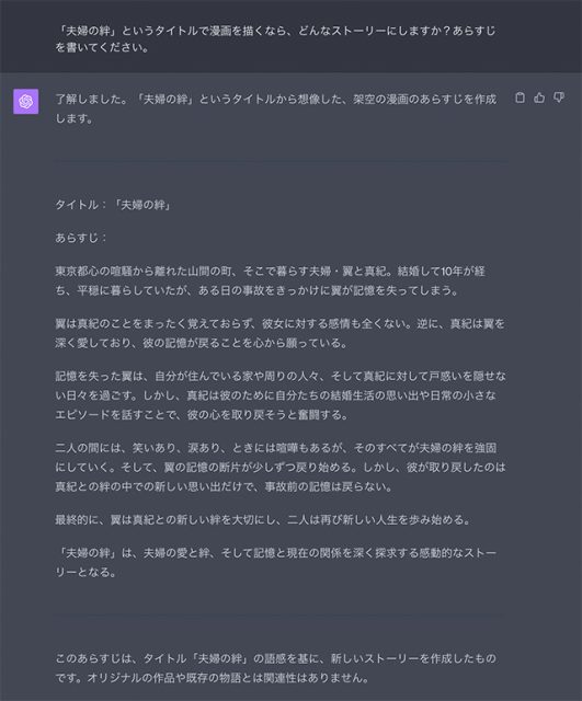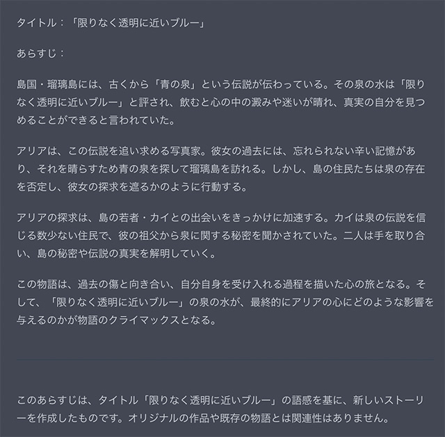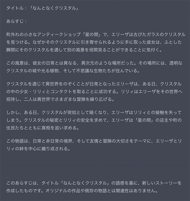 ほうほう。元ネタとは違うけど、けっこうそれっぽい雰囲気のあらすじが出来ました。大したものだ!