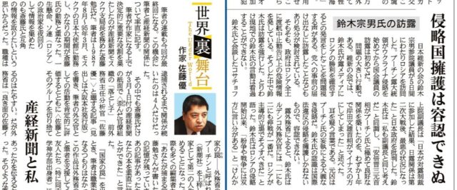 佐藤優、もしかしたら鈴木宗男と一緒にロシア擁護ばっかりしているから、ウクライナ戦争で徹底してロシアを批判している産経の社論と合わなくなって、ついに産経から切られたんですかね?