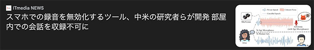 色々とディストピア感が止まりませんが、実はこの記事を書いていて「似たような、こっそり録音を邪魔する技術」と「邪魔技術の回避方法」を何個か考えついちゃいました…実験してみよう(詳しく知りたい人は、それなりの予算をご用意の上でご連…おや?外に誰か来たようだ)。