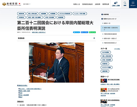 所信表明演説は、首相官邸のWebサイトで全文公開されていますが