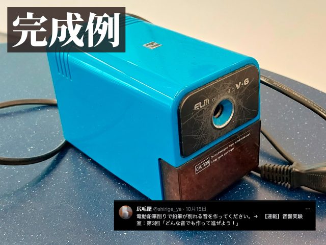 今回はまず肩ならし的に、X上で尻毛屋さんからリクエストをいただいた「電動鉛筆削り」の音を実演してみます。