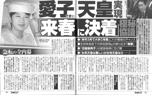 『愛子さま天皇実現「来春に決着」極秘協議』