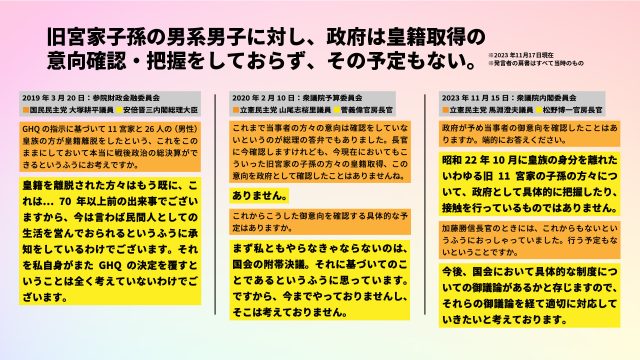 論破兵器研究所:第7回「旧宮家子孫への意向確認に関する政府答弁まとめ」