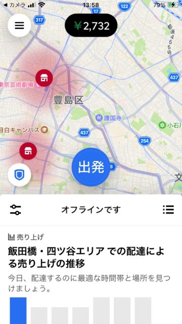 Google Mapアプリが立ち上がり、ナビ機能がスタート。これがUBER EATSのもう一つの画期的なところです。